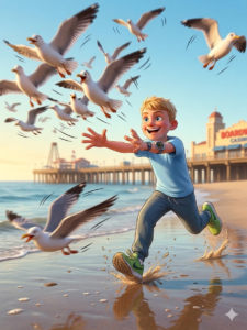 Owen decided to skip the shell hunting and instead attempted to catch seagulls along the shoreline, which went about as well as you’d expect for a kid trying to catch seagulls. (Yes you guessed it, and a treatment to match the efforts.)