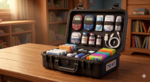 Since both of us were due to change our infusion sites that day, I packed two pods for me and two cartridges and infusion sets for Owen.