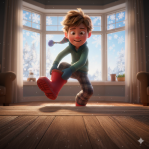 Then he prepared to head outdoors, with all the required winter paraphernalia. Mittens—check. Boots—check. Hat—check. None of it matching of course, but for a ten-year-old, that doesn’t matter. Out he went.
